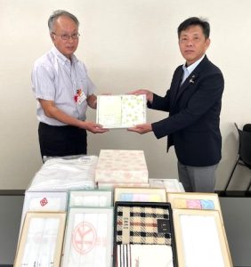 2025.10.08お知らせ寄付 ご寄付をいただきました令和7年10月7日、UAゼンセン 滋賀県支部様(写真右)からタオル504枚をご寄付いただきました。ご寄付いただきましたタオルは、災害支援活動や福祉施設での日常生活支援に活用させていただきます。
