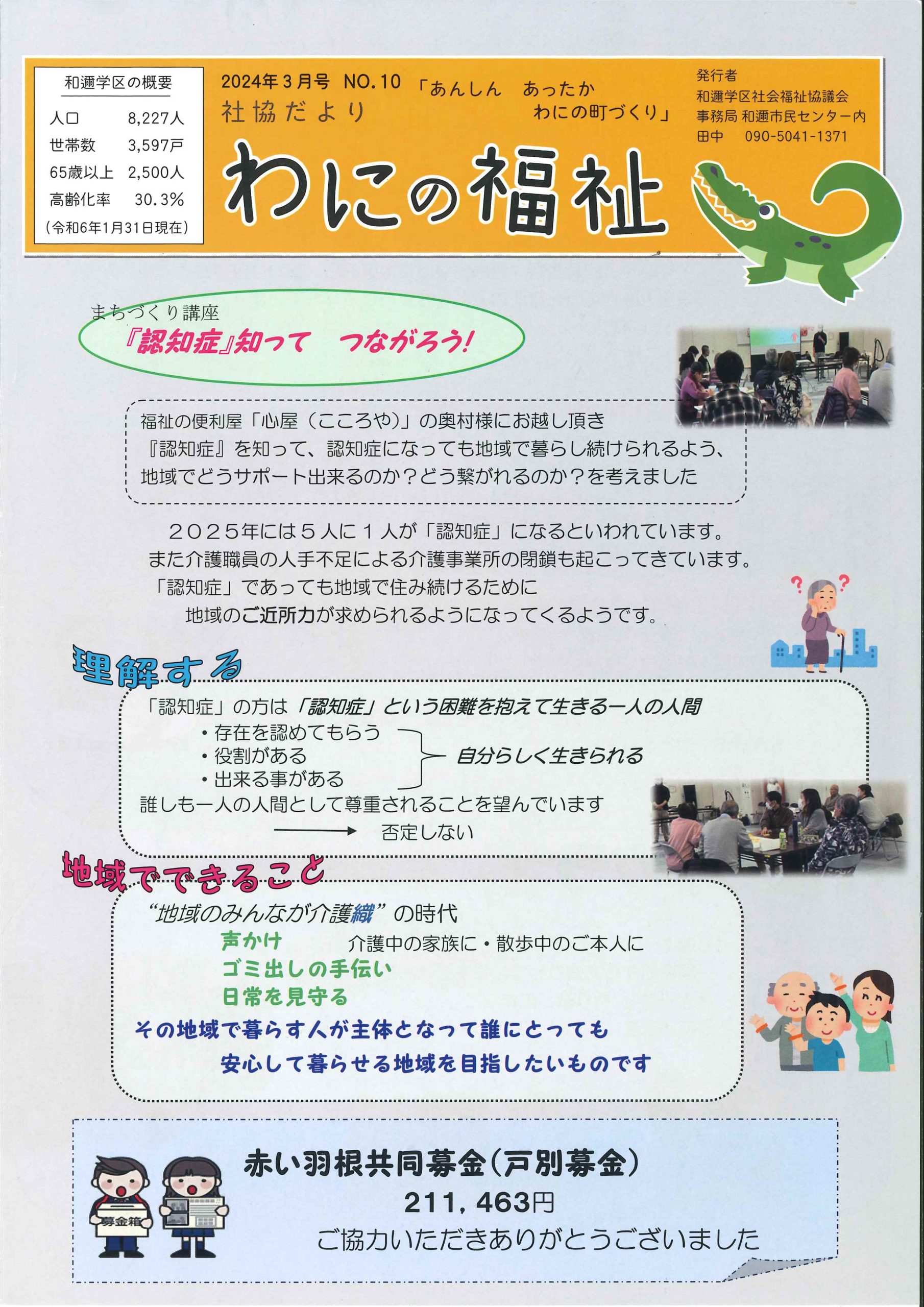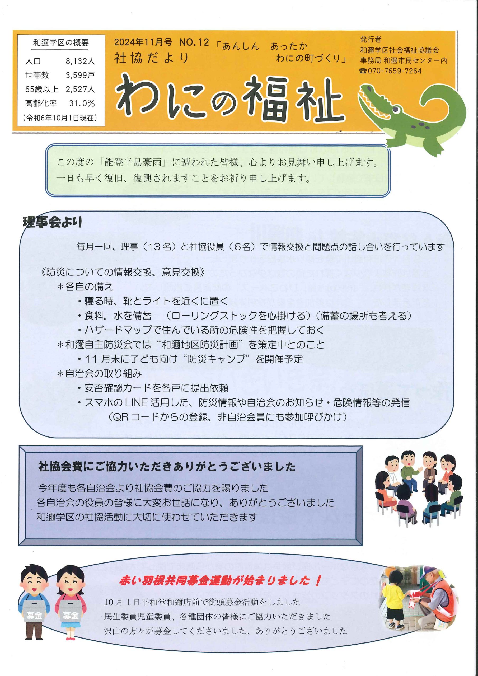 令和2年4月に「わにまちづくり協議会」が設立されました。他の各種団体と連携し福祉課題に取組んでいます。